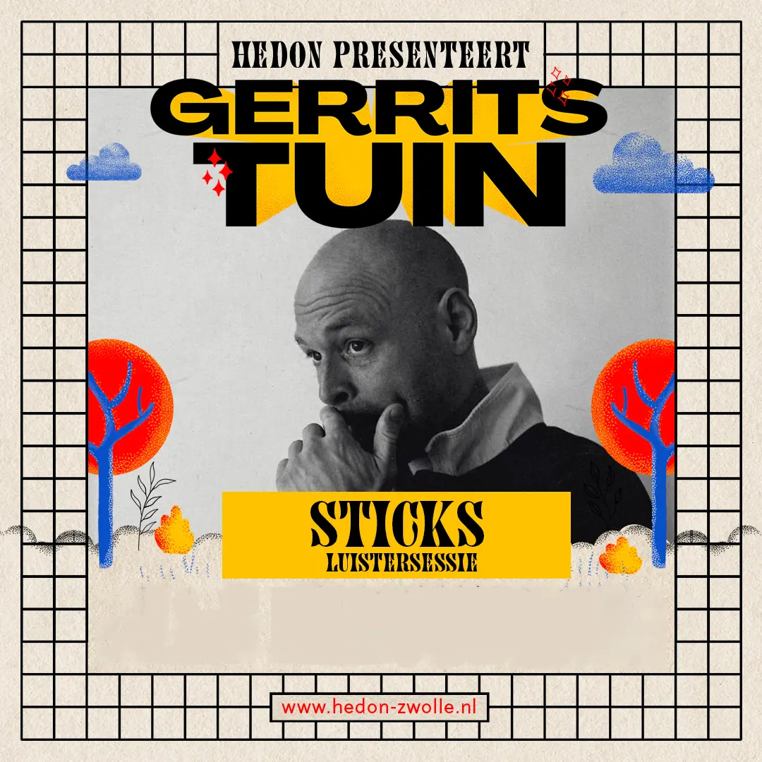 Op het gloednieuwe album STICKmatic hoor je de Sticks waar muziekminnend Nederland al jaren mee wegloopt. Eigenzinnig, kritisch en tegelijkertijd ontnuchterend. STICKmatic is geen ritje in de draaimolen maar een bezoek aan een attractiepark. Volgens onze eigen burgemeester van Lauwness voelt STICKmatic dan ook als zijn eerste echte debuutplaat. Maar wat maakt deze plaat zo persoonlijk en bijzonder? Hoe zijn de samenwerkingen zoals die met Hef, Mula B, S10 en Lijpe tot stand gekomen? Tijdens deze luistersessie van STICKmatic gaat Sticks in Gerrits Tuin met intimi en fans in gesprek over het maakproces van het album waarbij geen vraag onbeantwoord blijft. Want zoals Sticks het al treffend rapt op de track Ontastbaar: 'Al heb je alles wat je wilt en niks gedeeld, is het nog steeds te weinig. Mijn leven niet heilig’’.