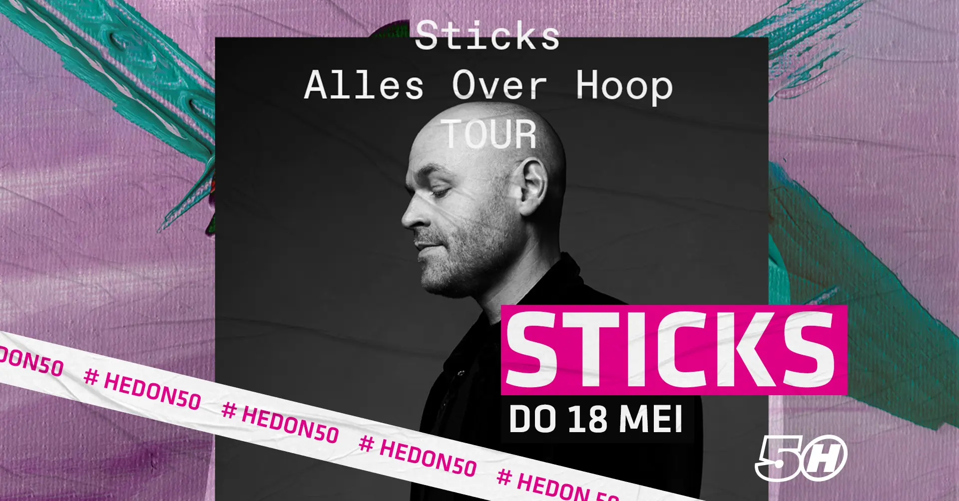 Sticks kennen we hier in Hedon wel. En hoe. Als vaandeldrager van de vaderlandse hiphop zijn we maar wat trots om hem hier zo vaak over de vloer te hebben gehad. En in het jaar dat Hedon vijftig kaarsjes uitblaast mag Sticks uiteraard niet ontbreken. In zijn ruim twintigjarige carrière kunnen we eindeloos hoogtepunten opnoemen, uiteraard zijn legendarische avonden met Opgezwolle maar ook de veelzijdigheid als artiest waar hij ons al zo lang van laat genieten. Dat vinden we tof. Want die veelzijdigheid zorgt er juist voor dat het nooit saai laat staan voorspelbaar is rondom Sticks. Van een indrukwekkende tentoonstelling in museum De Fundatie tot het als een verrassing lanceren van ‘Het Mooiste Komt Nu’. Sticks is altijd bezig met iets nieuws. Prikkelen. In januari verschijnt ‘Alles Over Hoop’. En uiteraard hoort daar een show bij in het kader van Hedon 50 Jaar. Sticks is een van onze iconen. Tast toe.
