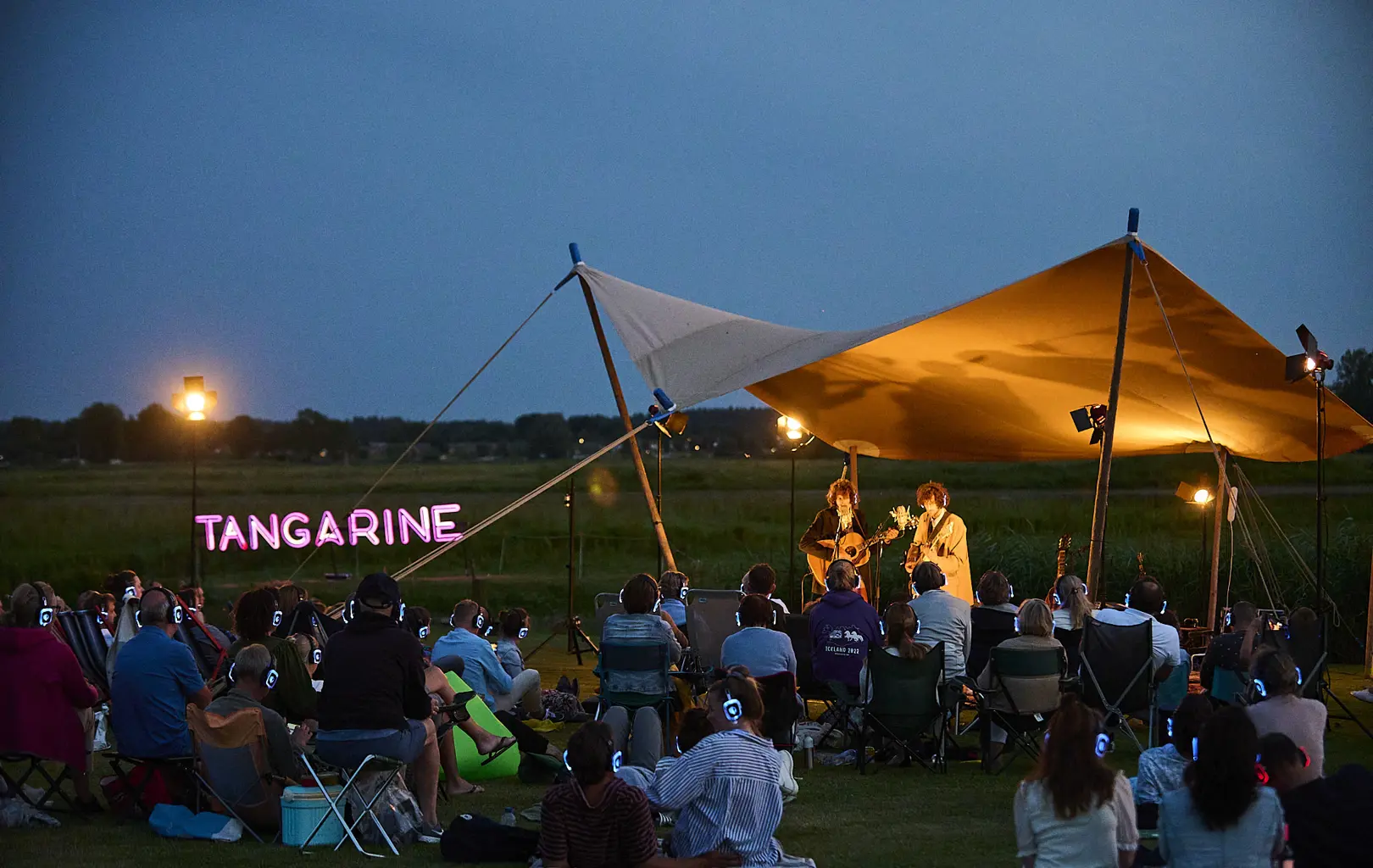 Op de langste dag van het jaar organiseert Tangarine sinds 2020 de IJsselconcerten, net buiten Zwolle. Op zondag 21 juni 2026 zullen de tweelingbroers Sander en Arnout Brinks wederom twee intieme concerten verzorgen volgens het bekende recept: een schitterend natuurdecor met ondergaande zon, een aandachtig luisterend publiek met koptelefoons op, luisterend naar de perfecte harmonieën van deze tweelingbroers.