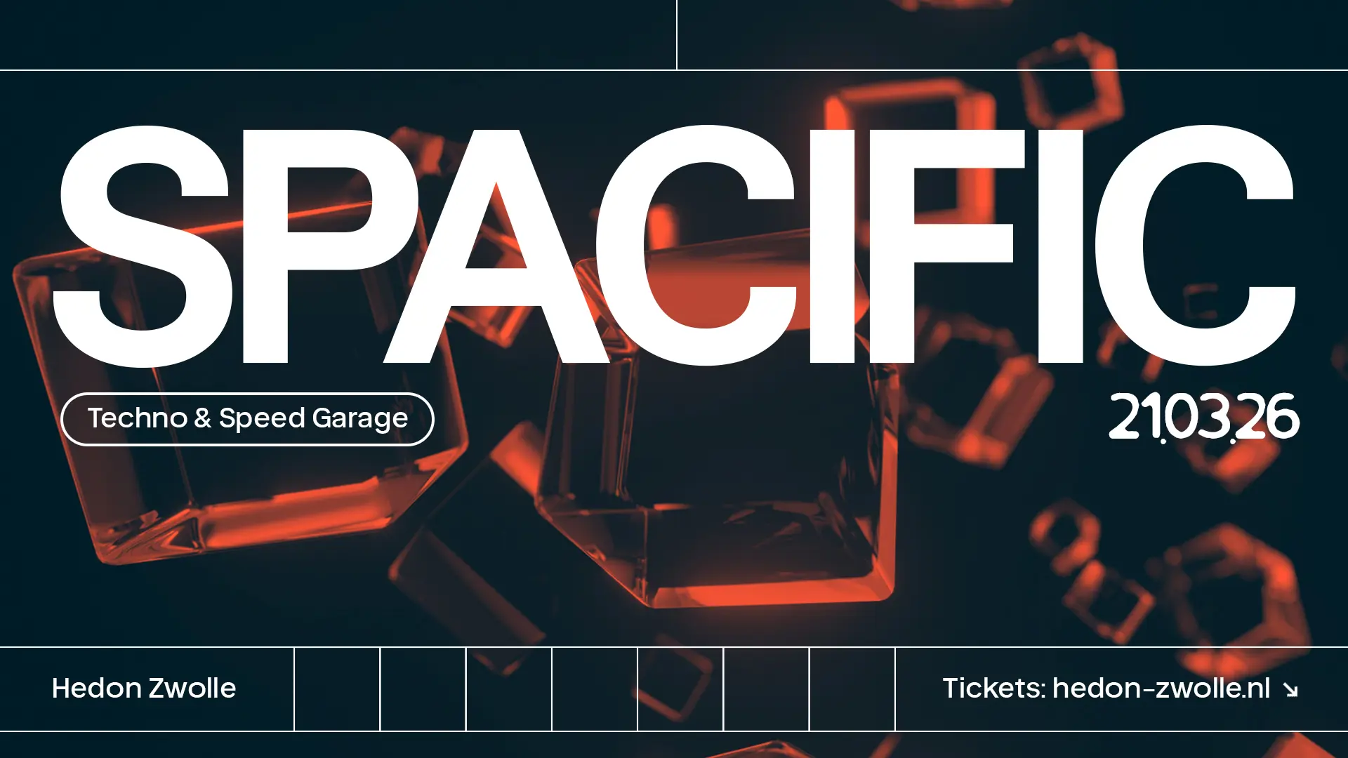 Techno en speed Garage smelten samen voor een nieuwe clubnacht in Hedon op 21 maart. Spacific vernieuwt en versnelt en verlegt de grenzen in de Zwolse clubcultuur; een terugkerend event waar zeer specifiek wordt gekeken naar nieuwe sounds en nieuwe energieën!